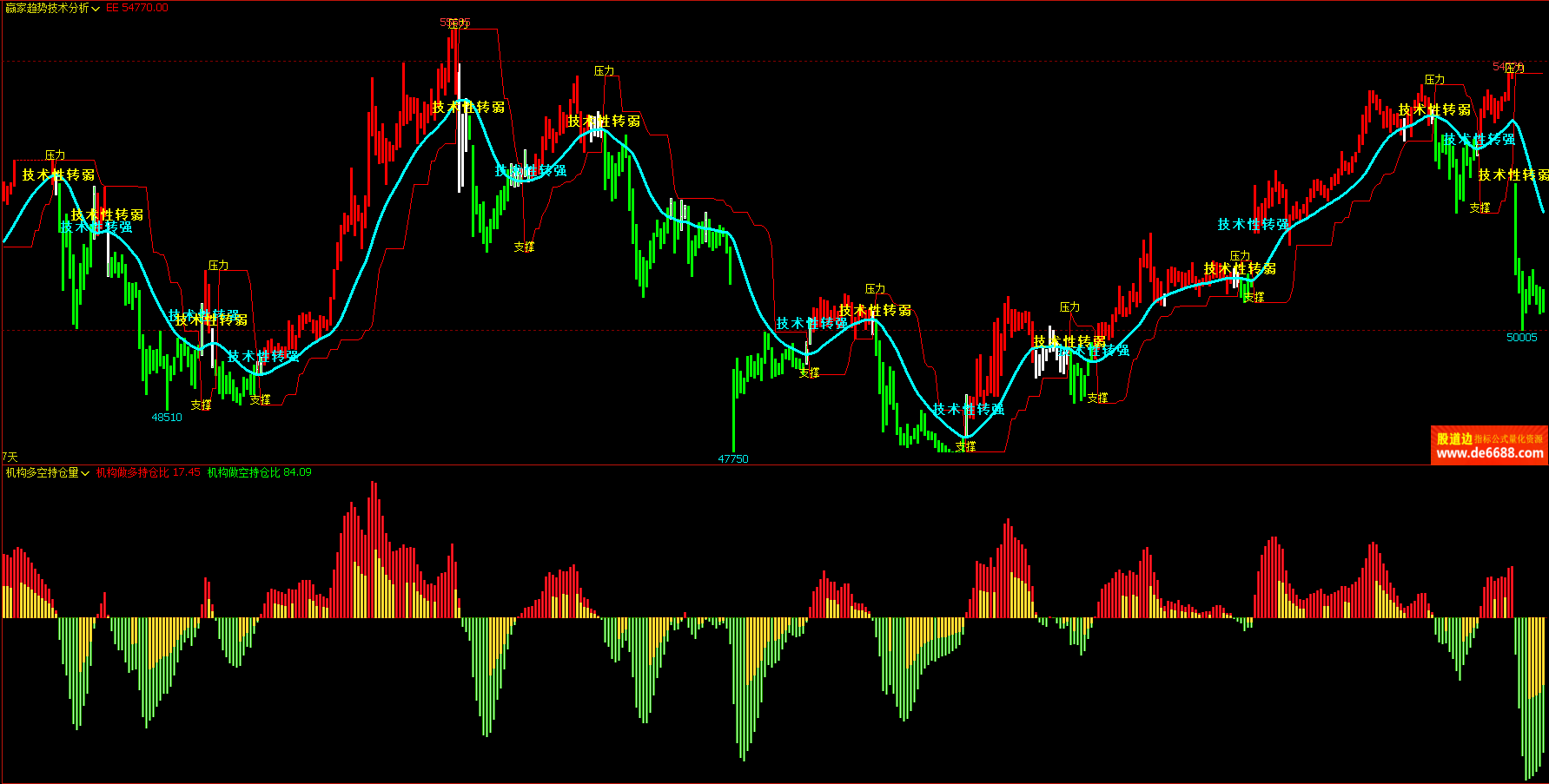 文华财经WH6 赢家趋势技术分析主图公式 压力支撑提示 主图指标源码 加密无时限