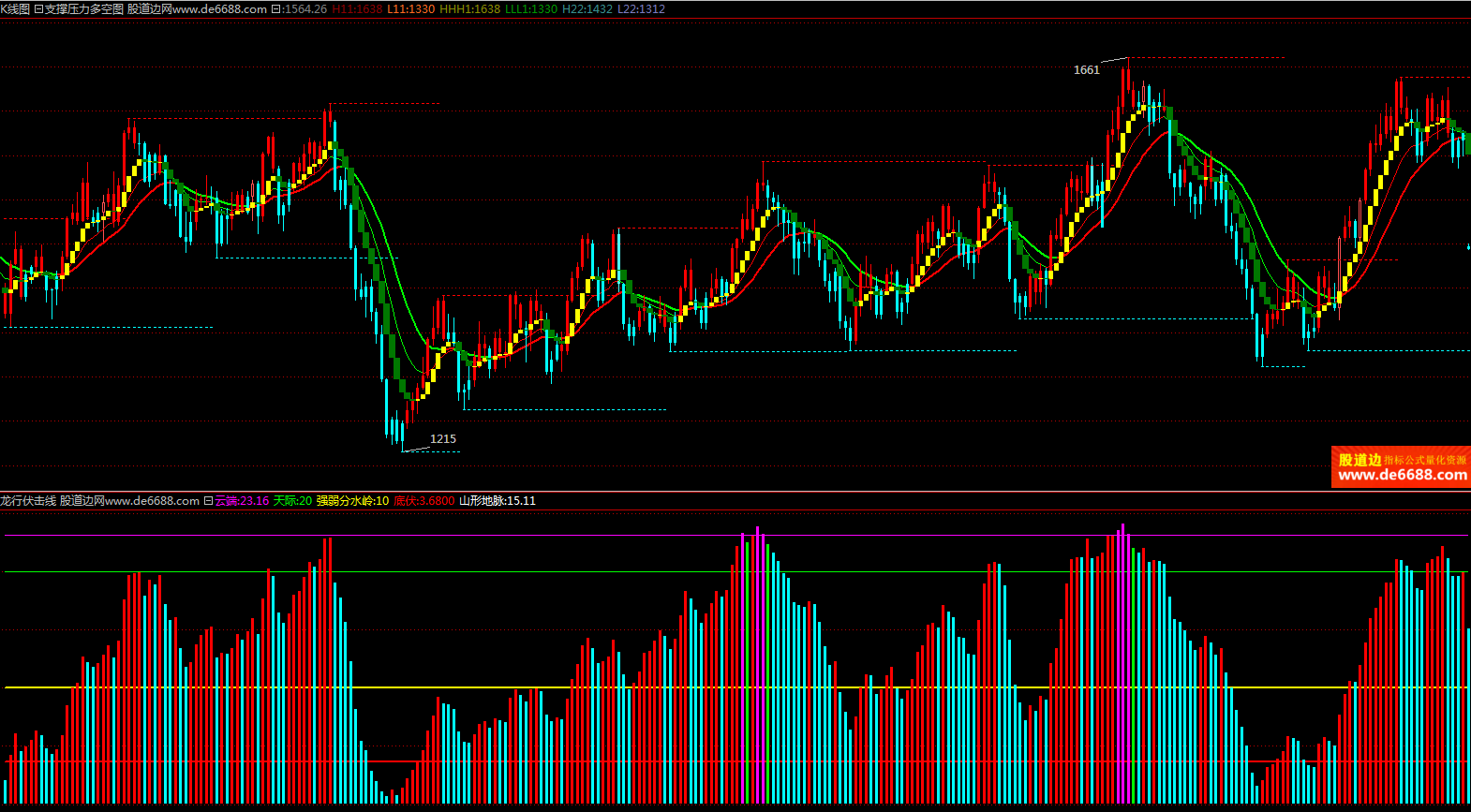 倚天财经软件 龙行伏击线副图公式 强弱分水岭 附图指标源码加密无时限