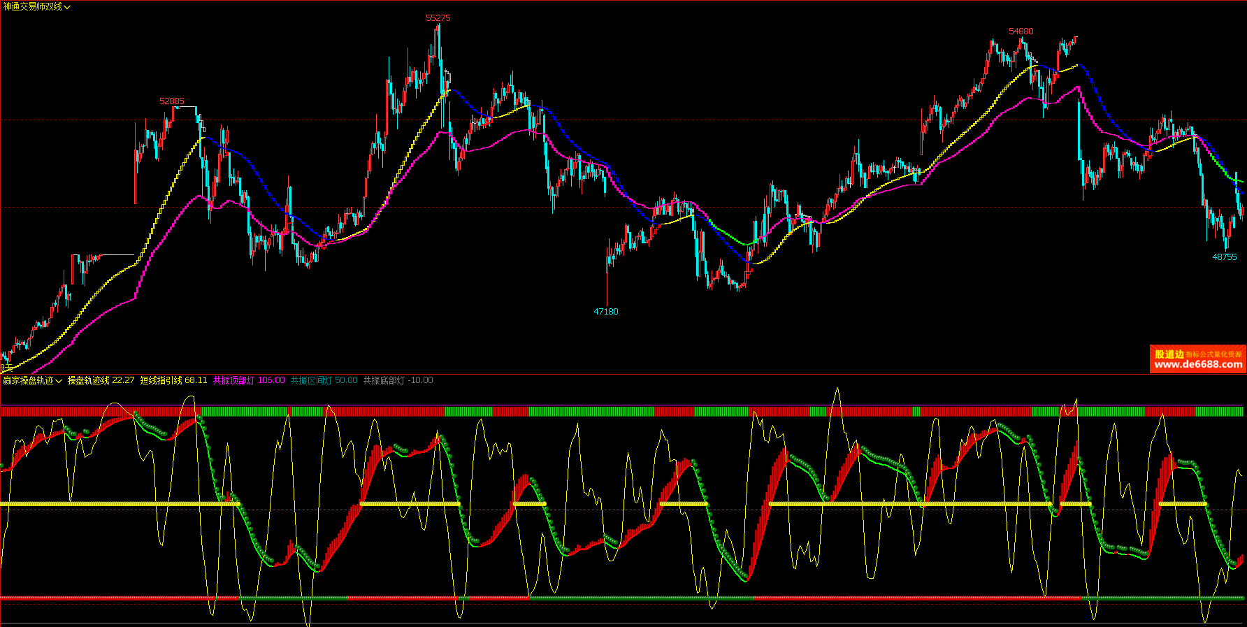 文华财经WH6 神通交易师双线主图公式 变色波段线 主图指标源码 加密无时限