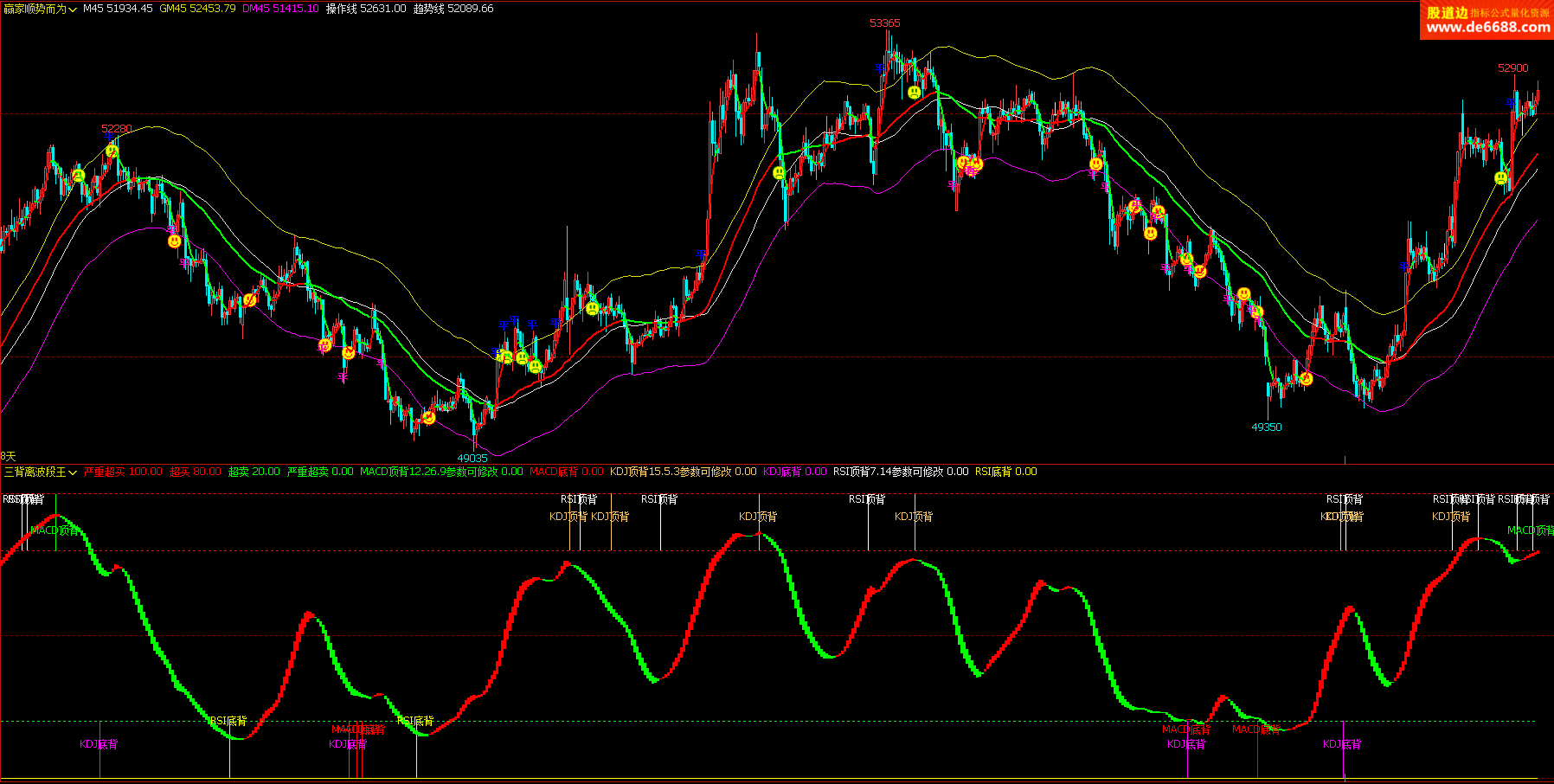 文华财经WH6 三背离波段王副图公式 KDJ背离 附图指标源码 加密无时限
