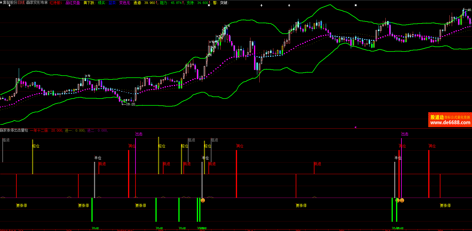 大智慧软件 赢家变形布林主图公式 变色龙线 主图指标源码加密无时限