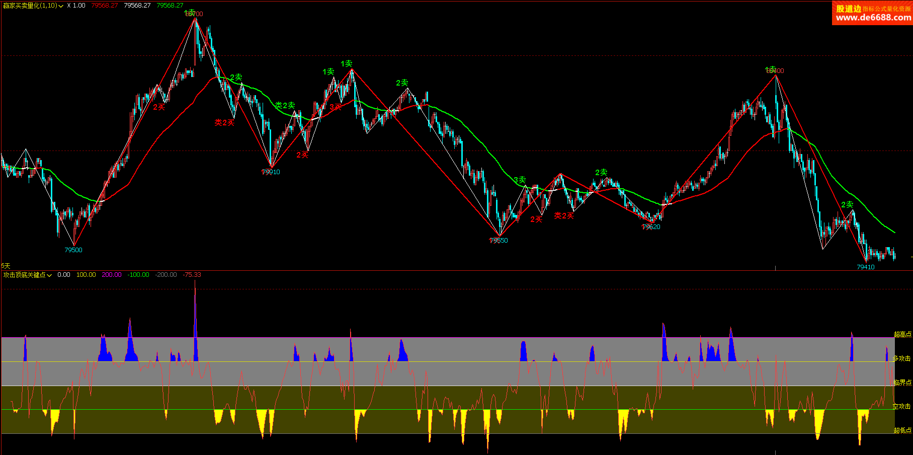 文华财经WH6 攻击顶底关键点副图公式 顶低区块提示 附图指标源码 加密无时限