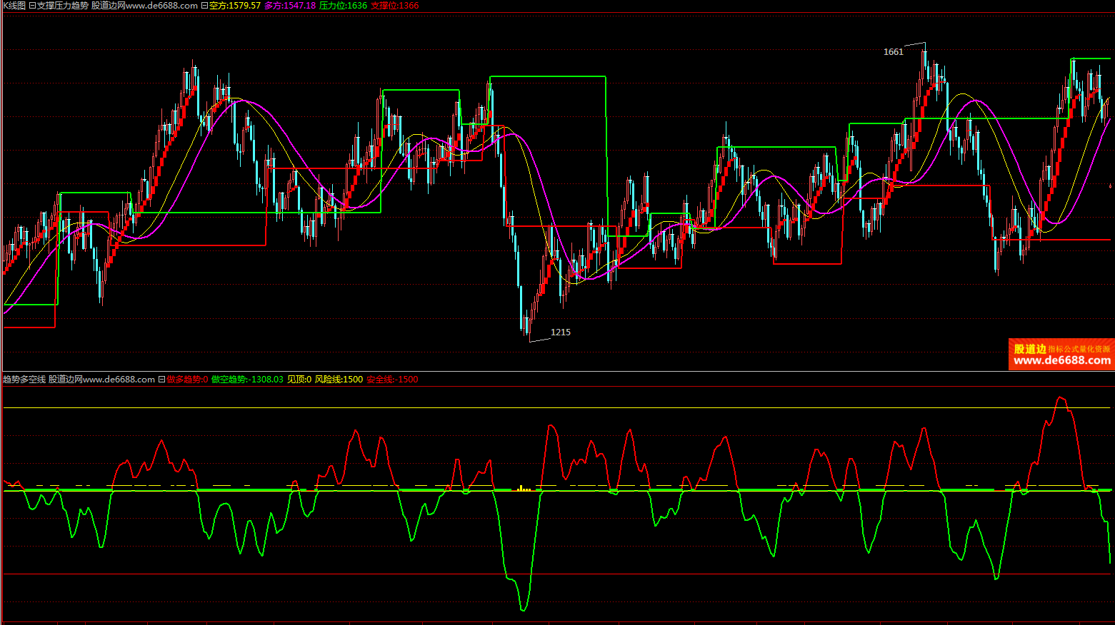 倚天财经软件 趋势多空线副图公式 红多绿空 附图指标源码加密无时限