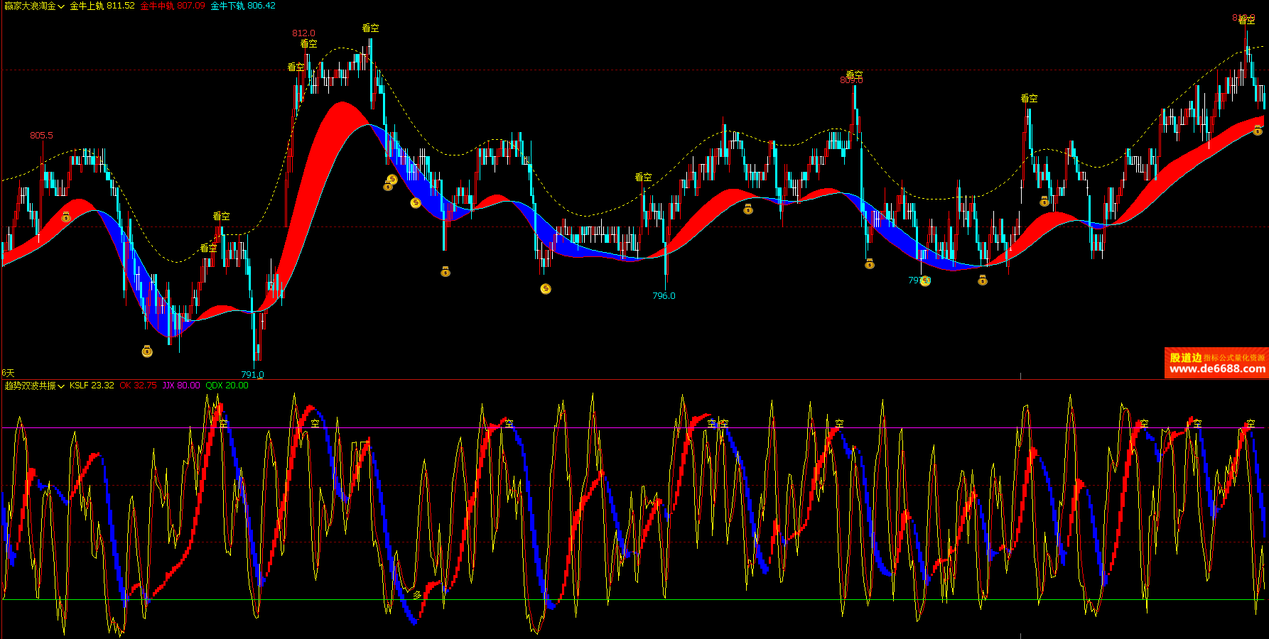 文华财经WH6 赢家大浪淘金主图公式 红蓝波浪线 主图指标源码 加密无时限
