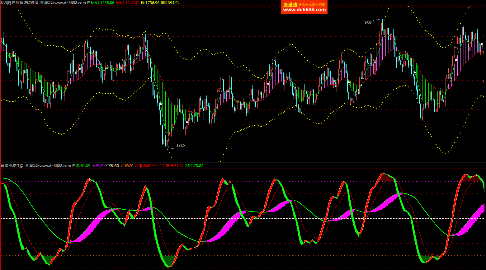 倚天财经软件 利赢波段通道主图公式 顶底波段 主图指标源码加密无时限