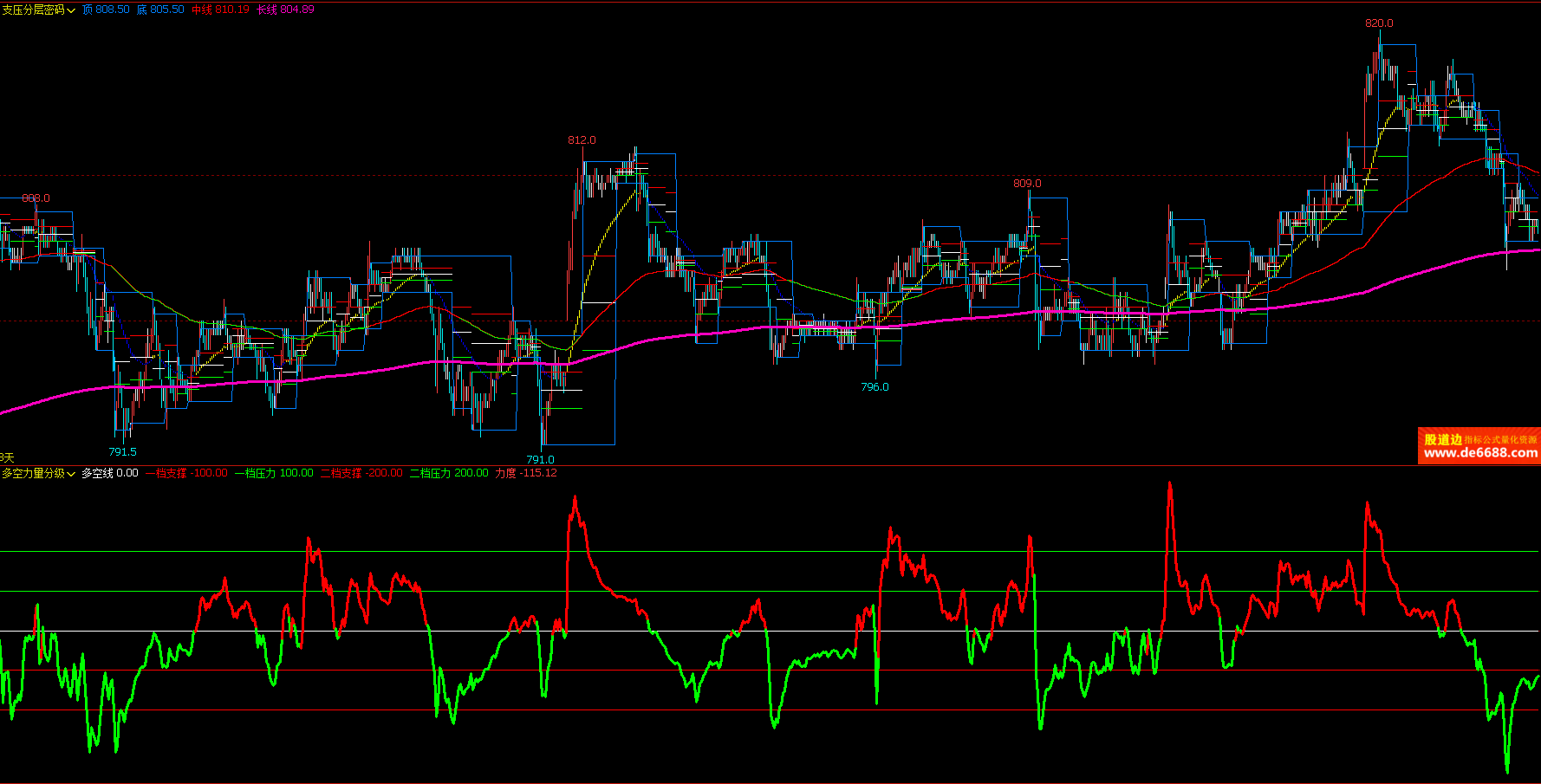 文华财经WH6 支压分层密码主图公式 中长线 主图指标源码 加密无时限
