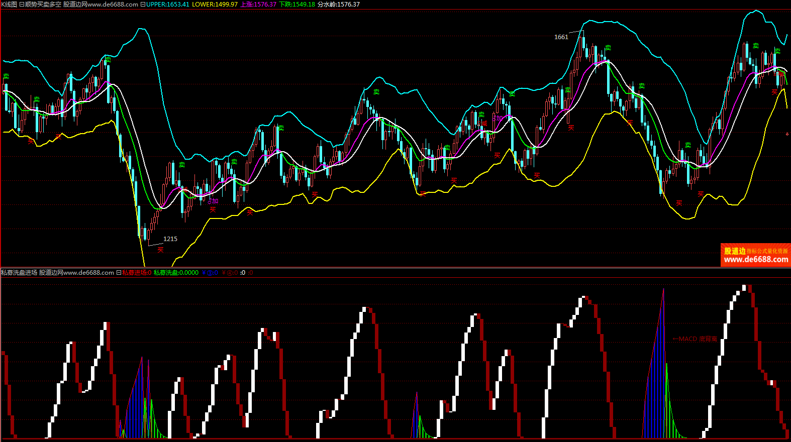 倚天财经软件 私募洗盘进场副图公式 MACD底背离 附图指标源码加密无时限