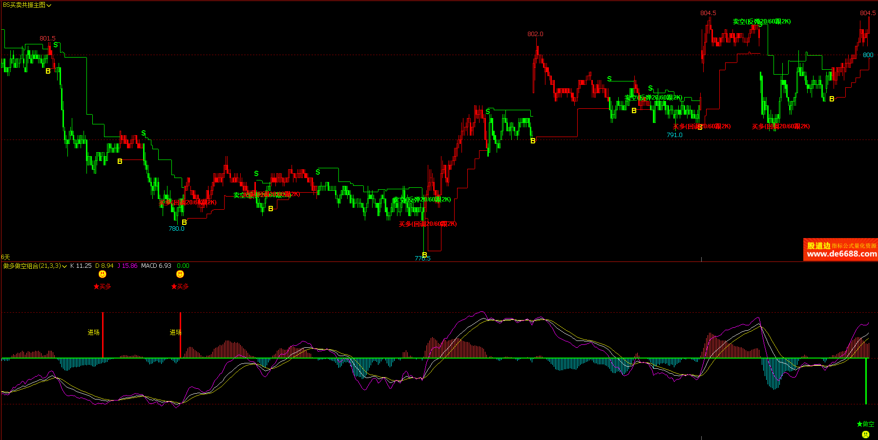 文华财经WH6 做多做空组合副图公式 KDJ MACD 附图指标源码 加密无时限