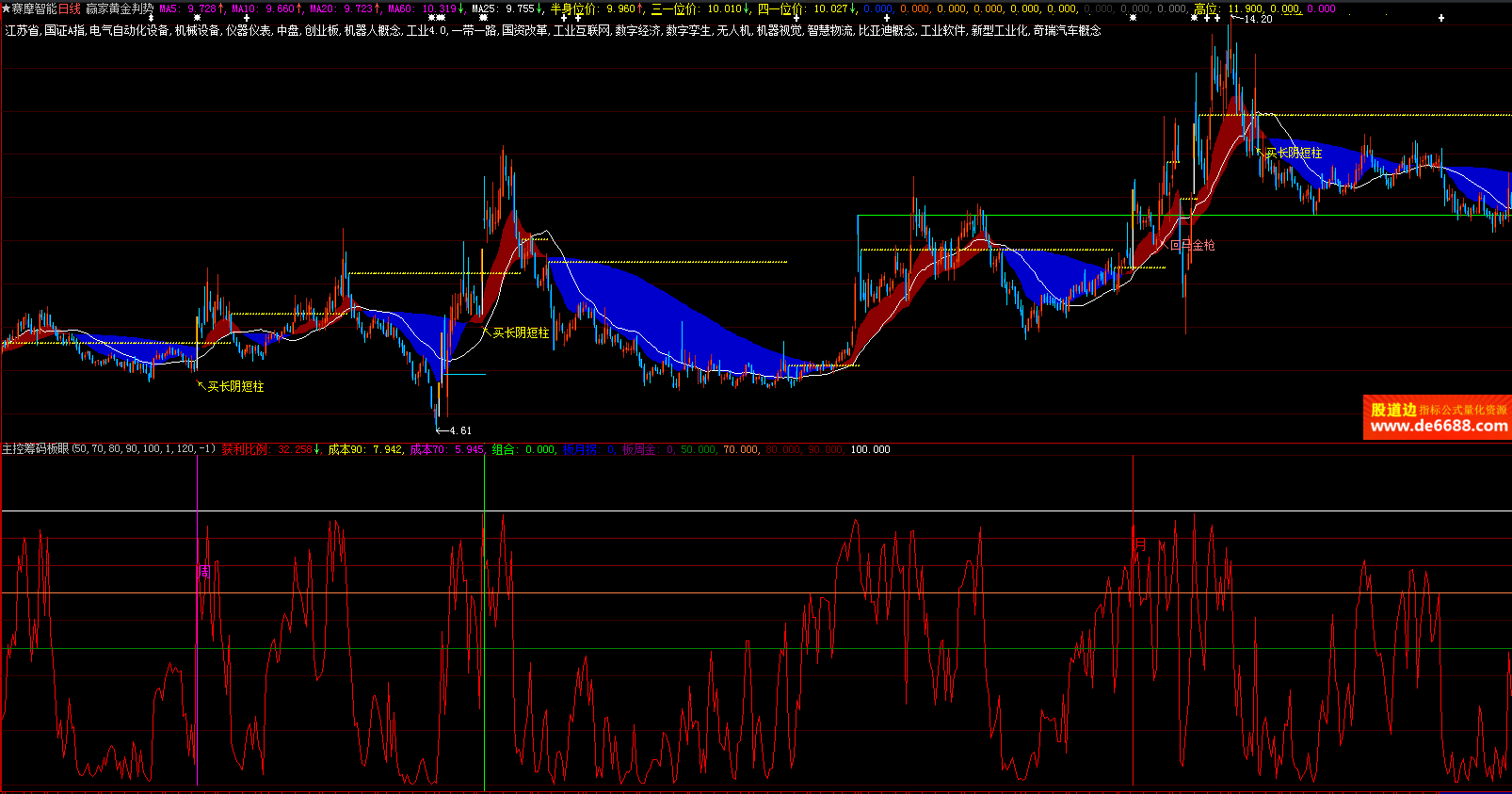 大智慧软件 主控筹码板眼副图公式 获利分界线 附图指标源码 加密无时限