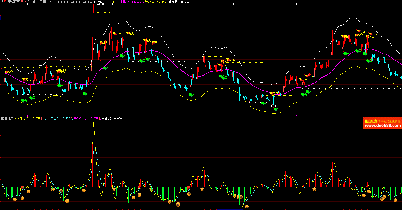 大智慧软件 财富精灵副图公式 红多绿空 附图指标源码 加密无时限
