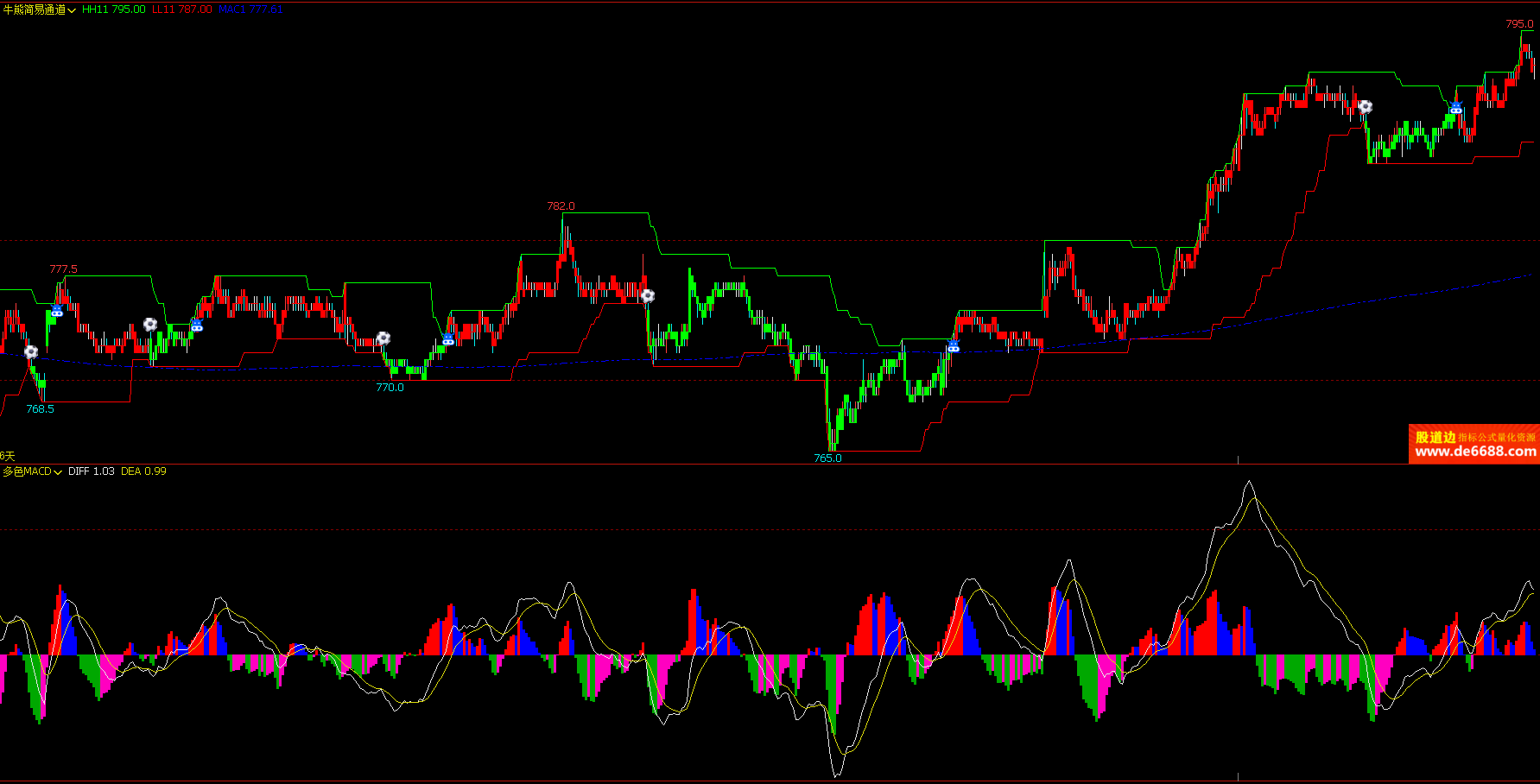 文华财经WH6 多色MACD副图公式 四色量柱 附图指标源码 加密无时限