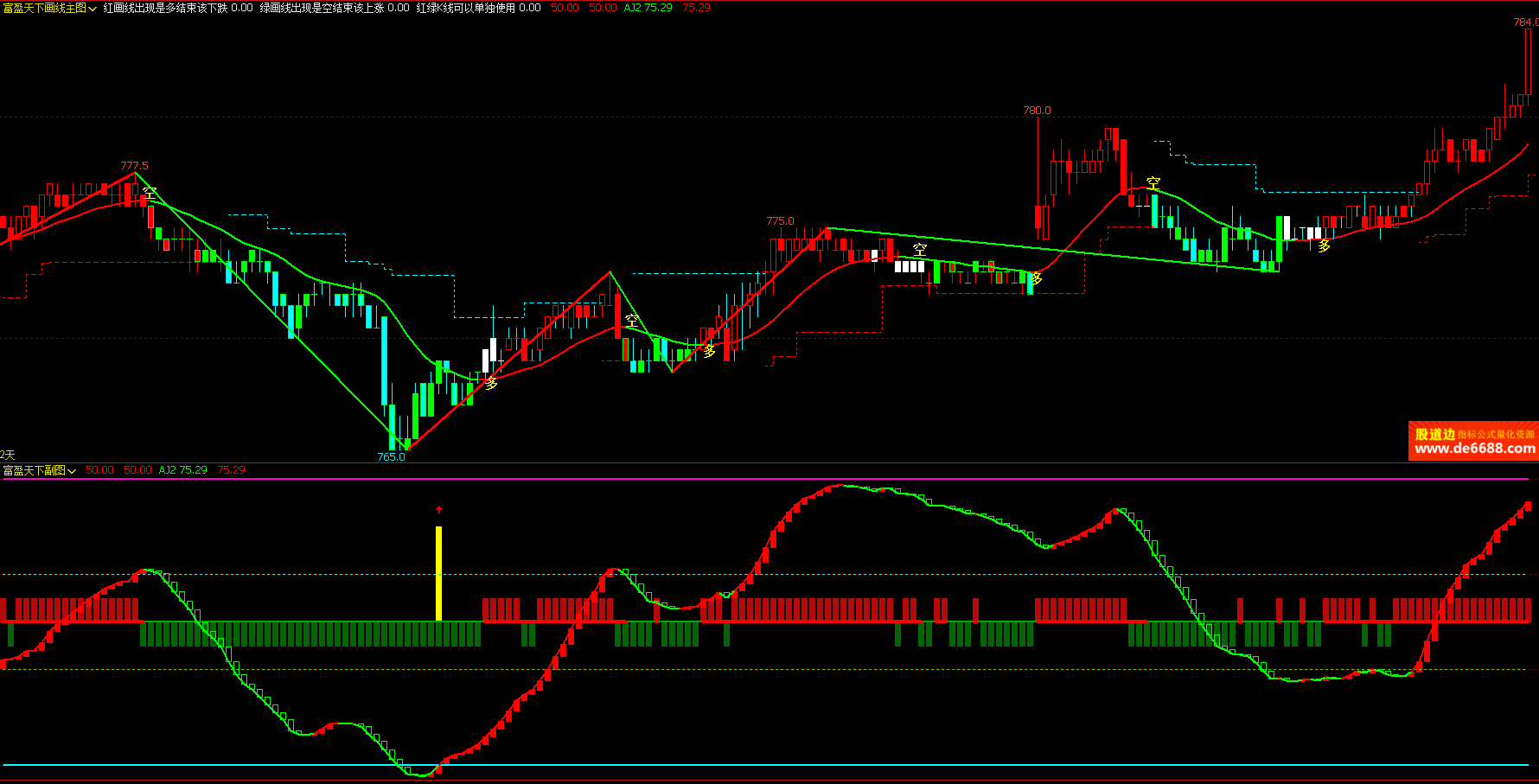 文华财经WH6 富盈天下画线主图公式 多空点提示 主图指标源码 加密无时限