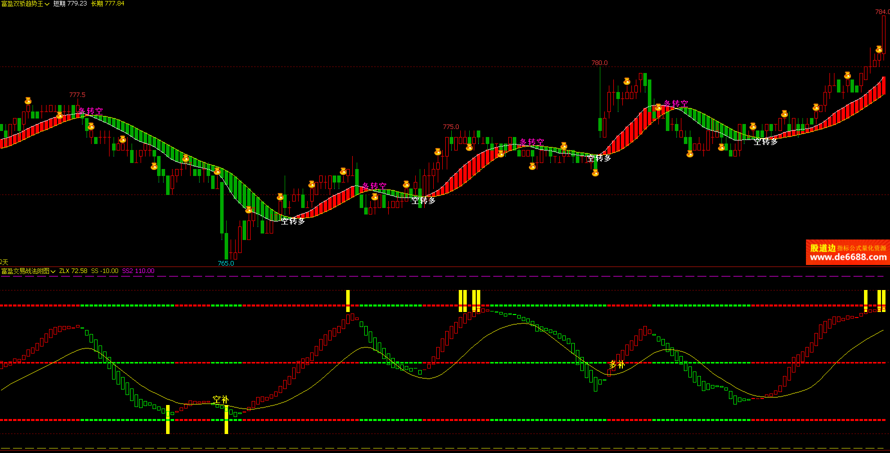 文华财经WH6 富盈双骄趋势王主图公式 多转空转提示 主图指标源码 加密无时限