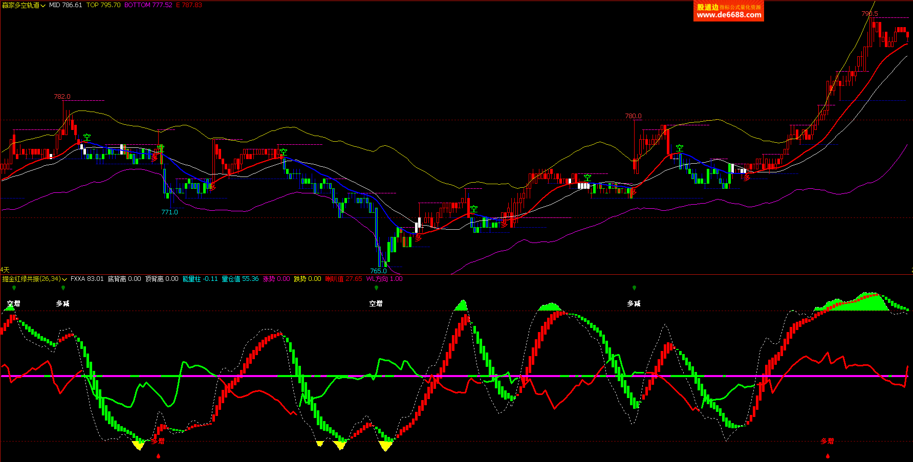 文华财经WH6 赢家多空轨道主图公式 支撑压力线 主图指标源码 加密无时限