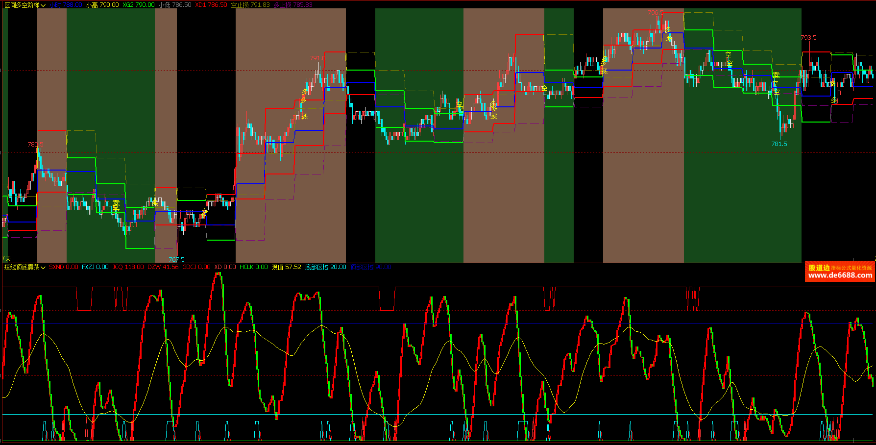 文华财经WH6 区间多空阶梯主图公式 多空变色 主图指标源码 加密无时限