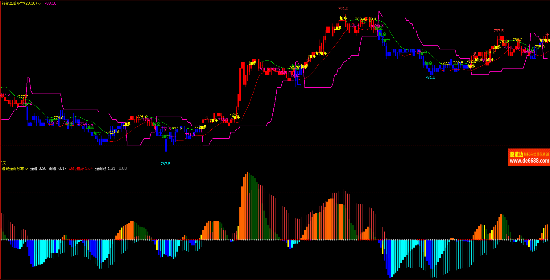 文华财经WH6 领航高低多空主图公式 加多加空提示 主图指标源码 加密无时限