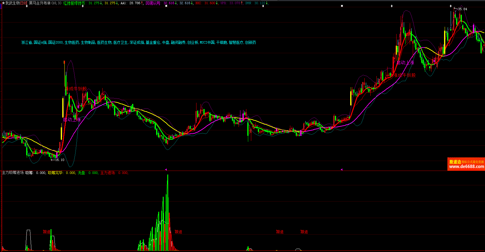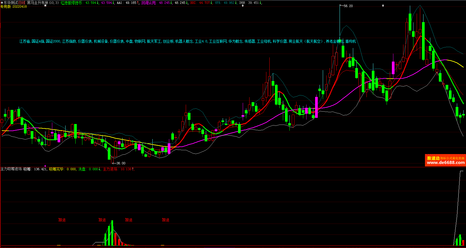 大智慧软件 黑马主升布林主图公式 红绿波段线 主图指标源码加密无时限