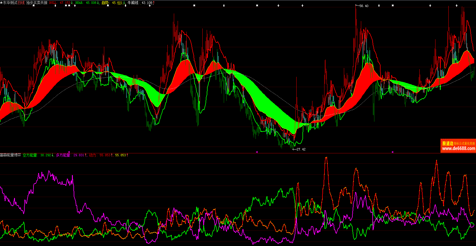 大智慧软件 富赢能量博弈副图公式 多空能量动力 附图指标源码 加密无时限